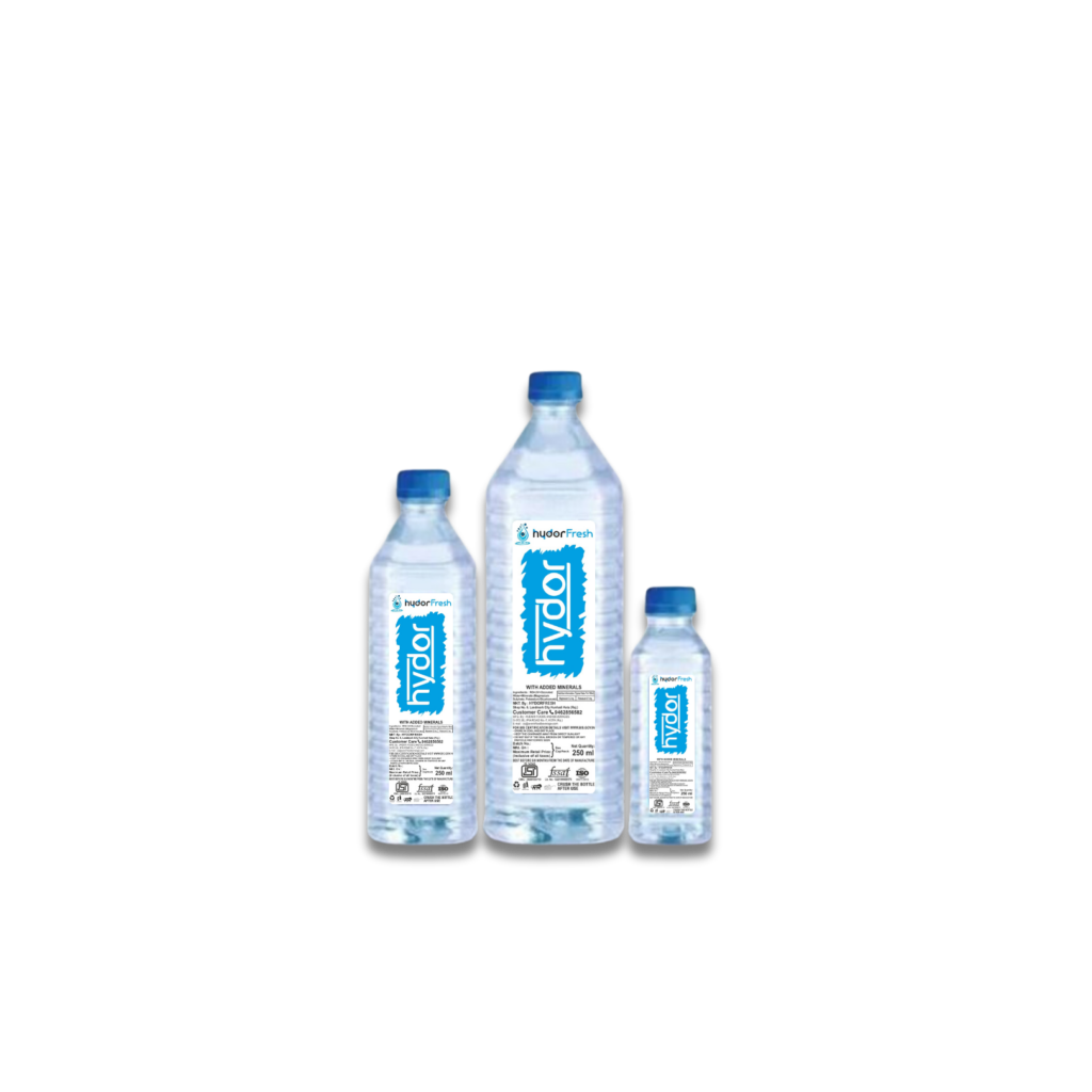 Enjoy our premium Hydor brand water, enriched with essential minerals, offering a refreshing experience for any occasion.